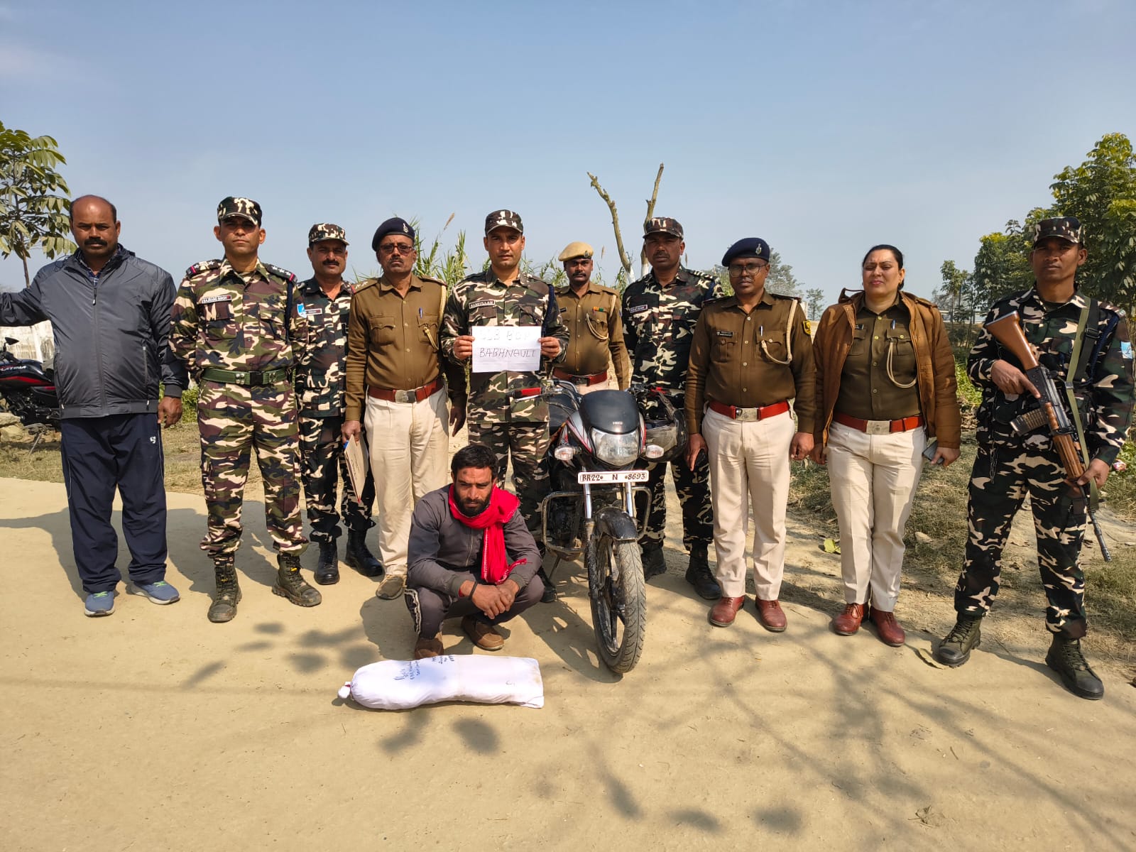 बेतिया के मैनाटाड़ पुलिस और बभनौली आउट पोस्ट पर तैनात एस‌एसबी के संयुक्त कार्रवाई में लाखों रुपये के गांजा सहित एक तस्कर को गिरफ्तार किया गया है। कार्रवाई रविवार के सुबह का है। कार्रवाई में एक बाइक भी जप्त किया गया है।मैनाटाड़ थानाध्यक्ष शंभूशरण गुप्ता ने बताया कि गणतंत्र दिवस के मौके पर एस‌एसबी के साथ समन्वय बनाकर कर सीमा पर गश्त की जा रही थी। रविवार के अहले सुबह बभनौली गांव के पास पिलर संख्या 414/02 के पास से एक संदिग्ध बाइक सवार नेपाल से भारतीय क्षेत्र में घुस रहा था। संदेह होने पर उस बाइक सवार को पुलिस और एस‌एसबी के जवानों ने रोकना चाहा। लेकिन बाइक सवार भागने के फिराक में था।जवानों ने उस बाइक सवार को खदेड़ कर पकड़ लिया। पकड़े गये बाइक सवार की सघन तालाशी ली गयी। तालाशी के दौरान एचएफ डिलक्स बाइक के सीट के नीचे एक वाटरप्रूफ पैकेट मिला।जिसे खोलकर जांच की गयी तो पैकेट से गांजा बरामद किया हुआ।जिसका वजन चार किलो एक सौ ग्राम हुआ। तुरंत बाइक सवार को गिरफ्तार कर लिया गया। गिरफ्तार गांजा तस्कर नेपाल के सूहपूर निवासी लक्षणदेव यादव का पुत्र जगभगत यादव है‌। जप्त गांजा की अंतरराष्ट्रीय कीमत एक लाख चौसठ हजार रूपये आंकी गयी है।थानाध्यक्ष ने बताया कि मामले में एनडीपीएस एक्ट के तहत केस दर्ज कर गांजा तस्कर जगभगत यादव को न्यायिक हिरासत में बेतिया भेज दिया गया है। कारवाई में थानाध्यक्ष शंभूशरण गुप्ता,दरोगा अनीता कुमारी,दरोगा राधाकृष्ण राय, बभनौली आउट पोस्ट के अधिकारी व जवान शामिल रहें।