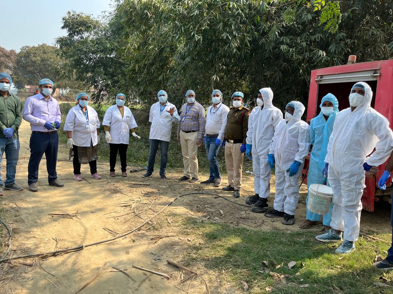 पश्चिम चंपारण जिले के मैनाटांड़ प्रखंड में एवियन इन्फ्लूएंजा H5N1 की आशंका को लेकर प्रशासन पूरी तरह सतर्क हो गया है। संभावित संक्रमण को फैलने से रोकने के लिए पशु स्वास्थ्य एवं उत्पादन संस्थान के वरिष्ठ विशेषज्ञ चिकित्सकों डॉ. दीपक कुमार, डॉ. प्रिया राज और राउत कविता अनिल के पर्यवेक्षण में जिला रैपिड रिस्पांस टीम RRT ने मोर्चा संभाल लिया है। RRT टीम के सदस्य डॉ. अशोक कुमार, डॉ. रजनीश कुमार, डॉ. अमित श्रीवास्तव, डॉ. अरमानुल्लाह और डॉ. इकरामुल्लाह द्वारा प्रभावित क्षेत्रों में सघन सैनिटाइजेशन और कीटाणुशोधन अभियान चलाया जा रहा है। टीम के सदस्य पीपीई किट, मास्क और ग्लव्स पहनकर तालाबों, जलस्रोतों और आसपास के खेतों में ब्लीचिंग पाउडर एवं एंटी-वायरल रसायनों का छिड़काव कर रहे हैं। पूरी प्रक्रिया वैज्ञानिक मानकों और बायो-सिक्योरिटी प्रोटोकॉल के तहत की जा रही है। इसके साथ ही प्रभावित क्षेत्र के निर्धारित दायरे में सतत निगरानी अभियान भी जारी है। जिला प्रशासन और पशुपालन विभाग ने स्पष्ट किया है कि स्थिति नियंत्रण में है और घबराने की आवश्यकता नहीं है। आम लोगों से अपील की गई है कि किसी भी बीमार या मृत पक्षी को न छुएं और तुरंत सूचना प्रशासन को दें। पोल्ट्री संचालकों को साफ-सफाई के कड़े इंतजाम रखने की सलाह दी गई है।जन-स्वास्थ्य और पशु पक्षियों की सुरक्षा के लिए प्रशासन हर जरूरी कदम उठा रहा है।