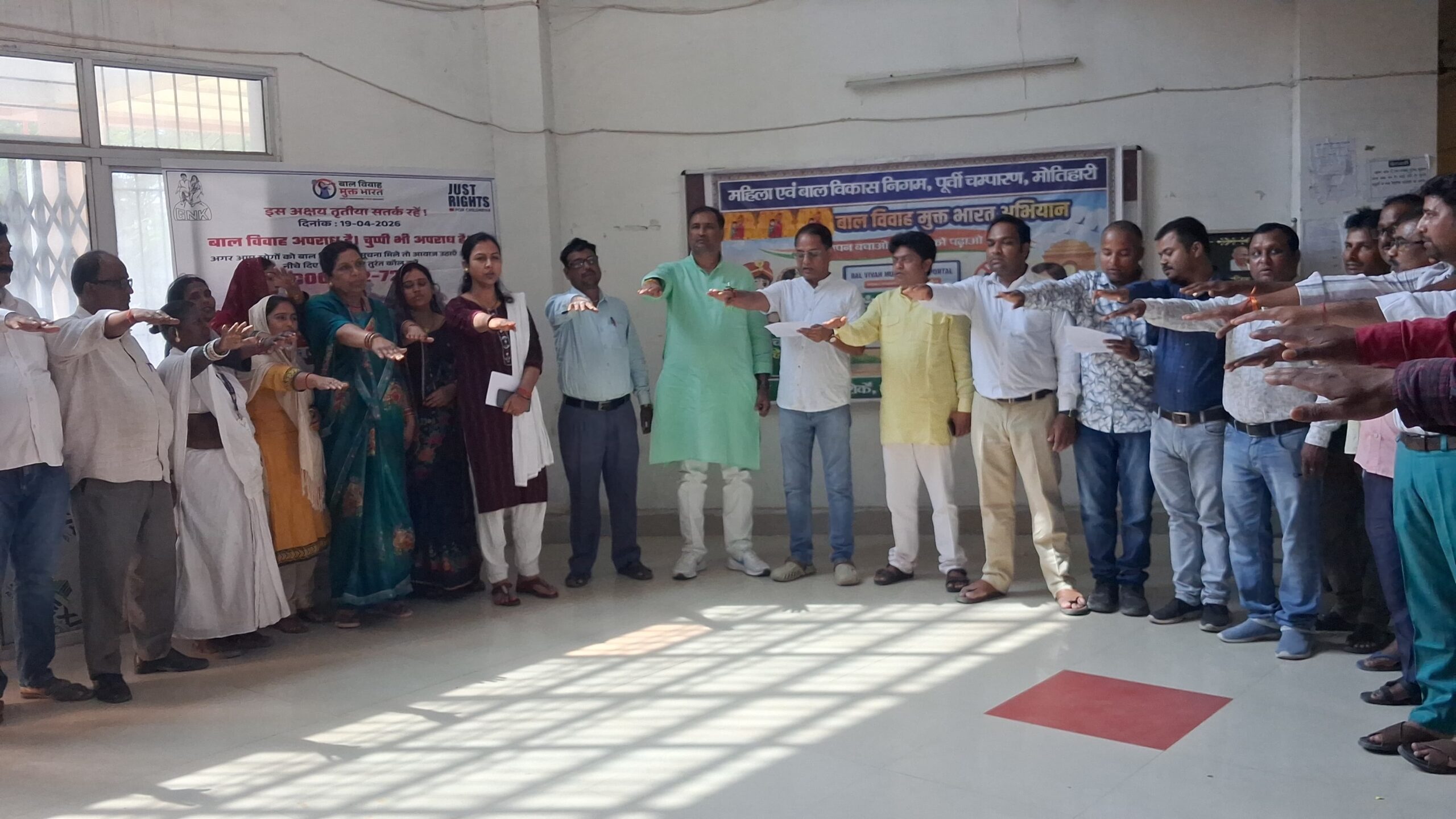 जिले को बाल विवाह मुक्त बनाने के उद्देश्य से अक्षय तृतीया के अवसर पर 17 व 18 अप्रैल 2026 को जिला प्रशासन के निर्देश पर व्यापक जागरूकता अभियान चलाया गया। इस दौरान अरेराज प्रखंड मुख्यालय, मुरा पंचायत और ढाका प्रखंड के गवंदरी पंचायत में शपथ ग्रहण व जन-जागरूकता कार्यक्रम आयोजित किए गए।