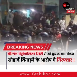 рдмреАрд░рдЧрдВрдЬ рдореЗрдЯреНрд░реЛрдкреЙрд▓рд┐рдЯрди рд╕рд┐рдЯреА рд╕реЗ рджреЛ рдпреБрд╡рдХ рдХреЛ рдкреБрд▓рд┐рд╕ рдиреЗ рд╕рд╛рдорд╛рдЬрд┐рдХ рд╕реМрд╣рд╛рд░реНрдж рдмрд┐рдЧрд╛рдбрд╝рдиреЗ рдХреЗ рдЖрд░реЛрдк рдореЗрдВ рдХрд┐рдпрд╛ рдЧрд┐рд░рдлреНрддрд╛рд░